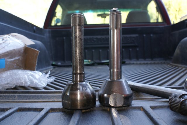 Bueno, me compre un set de homocineticas longfields para mi TLC, ese es uno de los upgrades mas tipicos ya que es el punto debil que tienen los Land Cruisers. El land Cruiser por defectoviene con homocineticas de 27 estrias. Hay 2 tipos de Longfields las de 27 estrias que sirven usando los mismos ejes (se pueden pedir ejes 4340 tambien) y estan las longfields de 30 estrias que necesitan ejes de 30 estrias obligatoriamente. Con respecto a la resistencia de c/u viene con esta tablita: Resistenia en Libras/pie Homocinetica Normal Toyota: 3.700 Longfield 27 estrias: 5.100 Longfield 27 estrias + ejes 4340: 6.500 Longfield 30 estrias + ejes 4340: 8.900 Bueno, yo me traje las mas baratitas (aunque no son nada de baratas), de 27 estrias, son harto ricas, se ven un poquitin mas grandes, aqui les adjunto unas fotitos para que la comparen. |