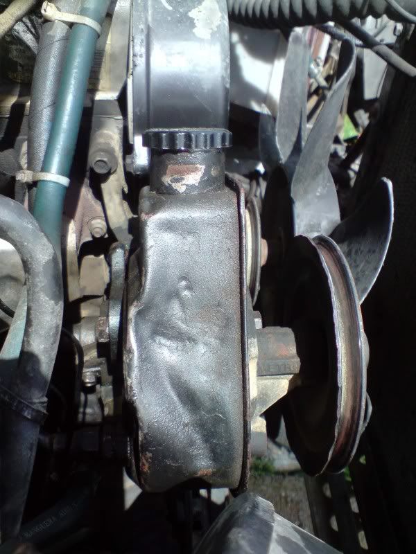 También mete cualquier bomba en cualquier deposito, sueltas los pernos de atrás del deposito, y la bomba sale hacia el frente, solo sella un o-ring. La única gran diferencia es que algunas la polea se afirma con una tuerca y otras es un asentamiento cónico. Y si lo que fallo solo es el reten, y lo demás esta bueno. El reten lo venden en cualquier casa de retenes, es cosa de cambiarlo, y solo es uno. Bye. |