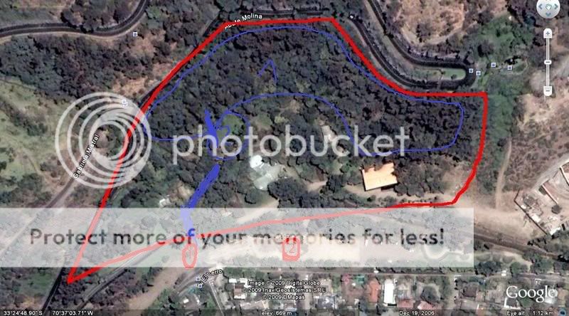 ya... en la foto les dejo demarcado donde fue el lugar que recorri, el punto 1 es todo lo que se puede jugar o lo que yo recorri mejor dicho, hya varias lineas para seguir, pero se pueden ir mezclando, tonces tendriamos lineas subiendo y bajando, laterales tambien,  el punto 2 es la explanada de pasto que digo, se puede llegar por los dos ingresos, pewro dejo marcado el camino que yo segui.... saludos y que lo pasen bien...   |