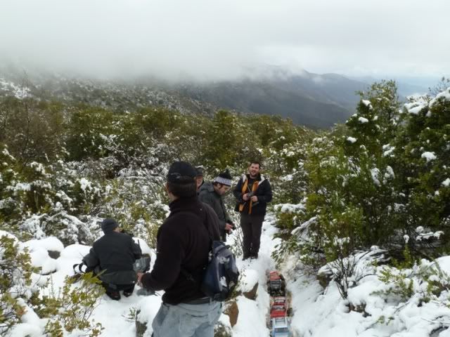 Cerca de Santiago y un grupo de comensales de seleccion, faltaron varios para lograr el mejor de los equipos, pero no todos siempre tienen el tiempo. No voy a decir que se lo perdieron los que no fueron, por que seria egoista de mi parte y la verdad es que siempre hay oportunidades. Pasado el cruce a Doñihue estaba Jimmy esperandonos en su Rocky, una fria mañana sin lluvia que pronosticaba el tenor de la salida, pasamos Lo Miranda y hacia el sector donde iriamos la nieve cubria bastante el cerro, nubes y neblina, en el camino ya se notaba el que tendriamos algo de barro en la cuesta, el paisaje sin duda era espectacular. Subimos la cuesta y en los 3/4 de esta comienza la nieve, sin duda ya teniamos pagado el viaje, falta solo ver si podriamos sacar nuestros RC y jugar. Llegando arriba caminamos hacia la ruta que tenia pensada, algo de nieve prometia una ruta diferente y asi fue !! en mi caso fue espectacular la salida y falto por lo menos casi la mitad de la ruta y eso queda como tarea para una proxima salida. Agradecer a todos por hacer de esta salida de aquellas inolvidables. Mas tarde fotos !!! |
