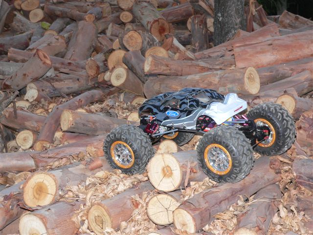Con respecto a invertirlas toy medio frito ya que no puedo por el tipo de adaptador que tengo, tendria que inventar algo, pero no ma molesta todavia el ancho que tiene. Aca hay fotos con la otra carroceria que tengo, F-150 Baja, esta no topa casi nada. |