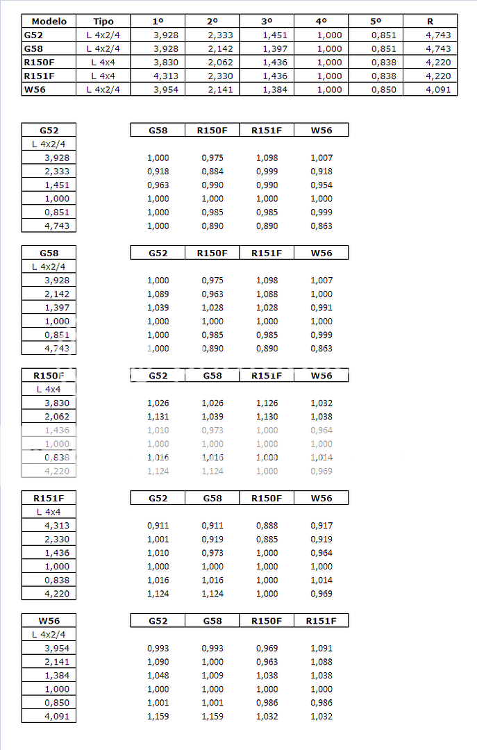 Luego de revisar bastante, la caja es una G58, es muy similar a una G52, solo cambia la 2º y 3º. Con la R150F no hay tanta diferencia con la relación, pero con la R151F si hay un poco mas.