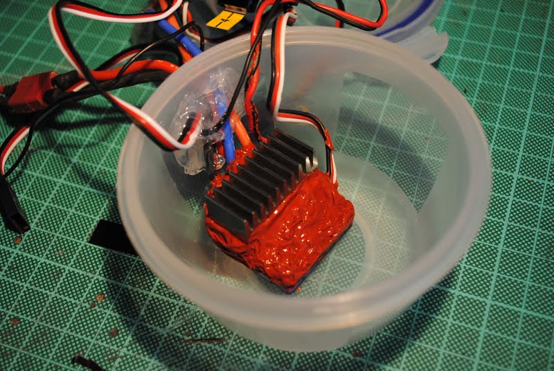 Además puede ser cualquier silicona, no necesariamente la roja que se usa para sellar escapes por lo que soporta Tºs sobre los 300ºC y los esc trabajan muy por debajo de los 300.