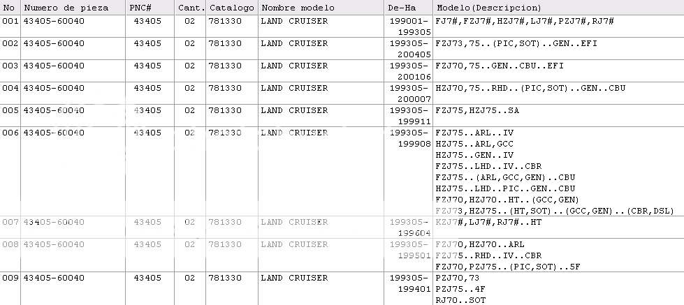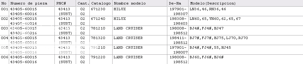 El numero de parte 43405-60040 vendría siendo la 2da del primer esquema? Slds. |