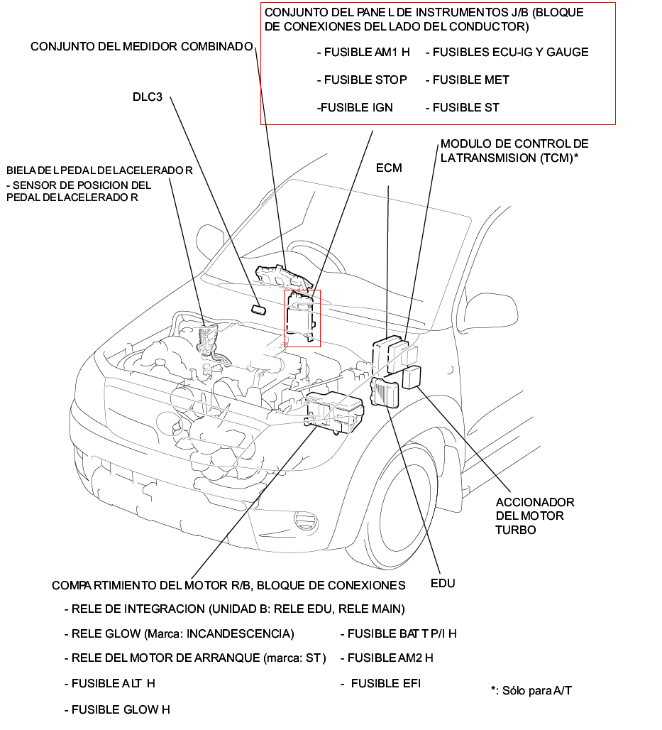 ![]() O bien los AM1 y AM2 que se encuentran en la caja de fusibles del compartimiento del motor (estan indicados en la caja de fusibles y en el manual de usuario). |