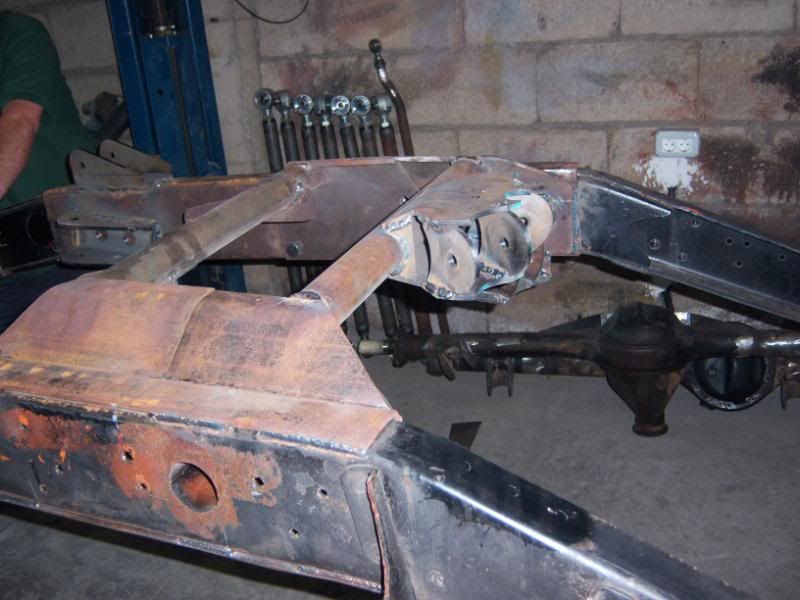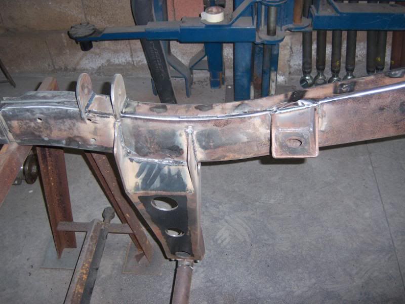 Respecto del refuerzo para la caja de dirección, mas que poner placas rectas por ambos lados, debes preocuparte de poner cilindros o guias que atraviesen el chasis, para que al apretar los pernos que sujetan la caja, el chasis no se comprima. Sino con el tiempo se sueltan.