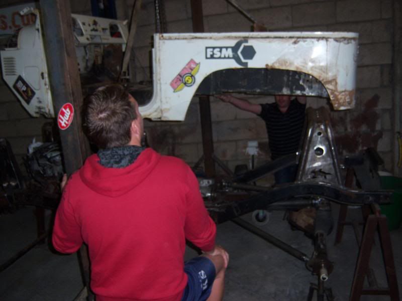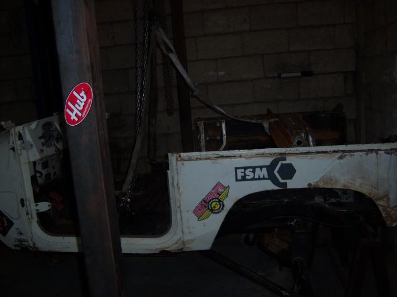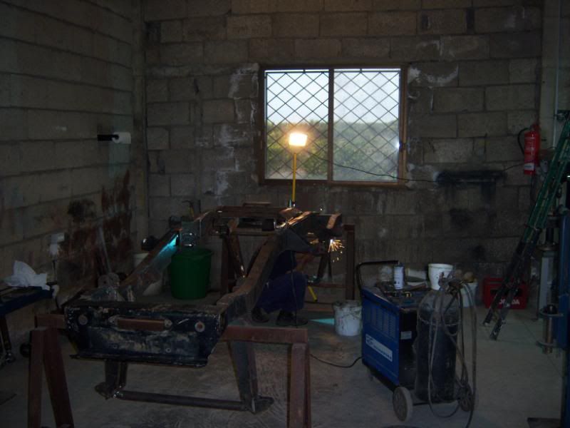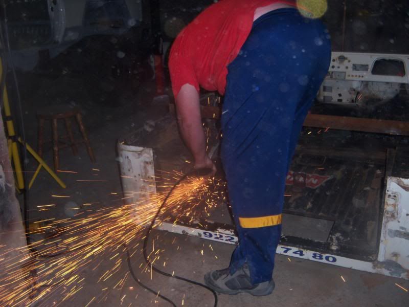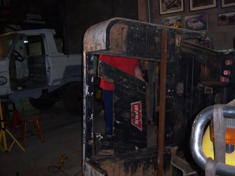 Y mas o menos ya terminado el chasis, empezamos a meterle mano a la carrocería, que como todo buen Toyota presenta un inmejorable estado de conservación ;-) (Le hemos soldado un travesaño para que no se deforme)
