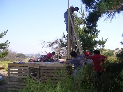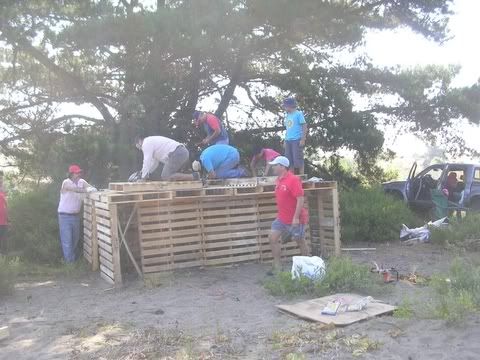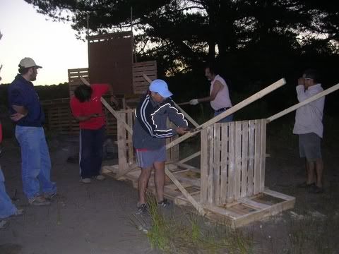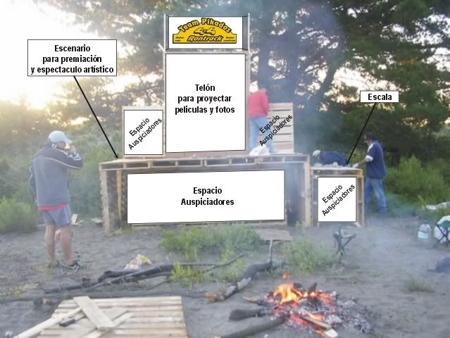 Fue muy entretenido hacer una ruta arrastrando esa carga, buena muñeca mostraron los conductores!!!! ![]() Y por fin estaba listo el escenario!!! mmm... pero siempre estaban los pequeños grandes detalles ![]() Arrechupallas... nos habiamos olvidado del meson del asado!!! asi que aprovechando la ultima luz la armamos rapidamente ![]() Y al fin, con la ultima luz del dia posamos con la obra terminada!!! (Los zankudos habian correteado a Vitorio asi que no alcanzo a salir en la foto) ![]() ¿Queeeee...?¿Encontraron fea la custion? pero si es la obra gruesa no mas po!!! ![]() Imaginensela con los cartelones puestos, y la musica y la gente y la luz y las peliculas en el telon, y toda la gente saltando y riendo!!! Se va a ver ATR!!! jajajjaa bueno, con un poquito de imaginacion se puede ver asi... ![]() Reconocimientos: A Vitorio que fue con toda su familia y clavó con un entusiasmo contagioso A Luna que con su hijo se la jugaron todo el rato A Zeta y su hijo que trabajaron como chinos Al Pajarito (Rancho Azul) que entre guevillo y guevillo le ponia el hombro a la obra y coopera al 100% A Zanku que llevo alegria y aprendio a clavar por fin A Majitu Lindu que se incorporó de la mejor manera al equipo A la Sitalily que nos acompaño y se las dio de directora de obra Al Crazy Duck por el generador y los constantes llamados de aliento Al papá del RanaRene (Marcel) que nos nos cobró por el flete de la madera A los amigos que cooperaron con materiales A los amigos que nos mandaron buenas vibras por el foro A todos, Muchas Gracias!!! Última edición por Ermitaño fecha: 12-03-2007 a las 23:45:49 |